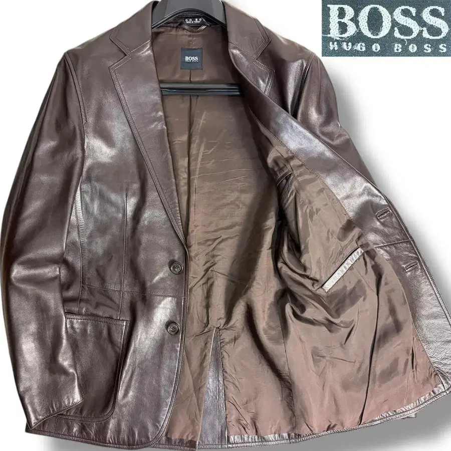 HUGO BOSS (휴고보스) 다운 단정한 마감이 돋보이는 램 가죽 소재의 테일러드 자켓.