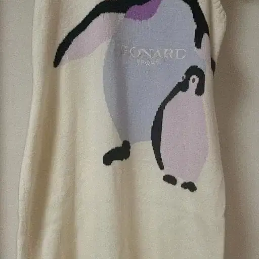 LEONARD SPORT 펭귄 디자인 슬리브리스 니트 원피스