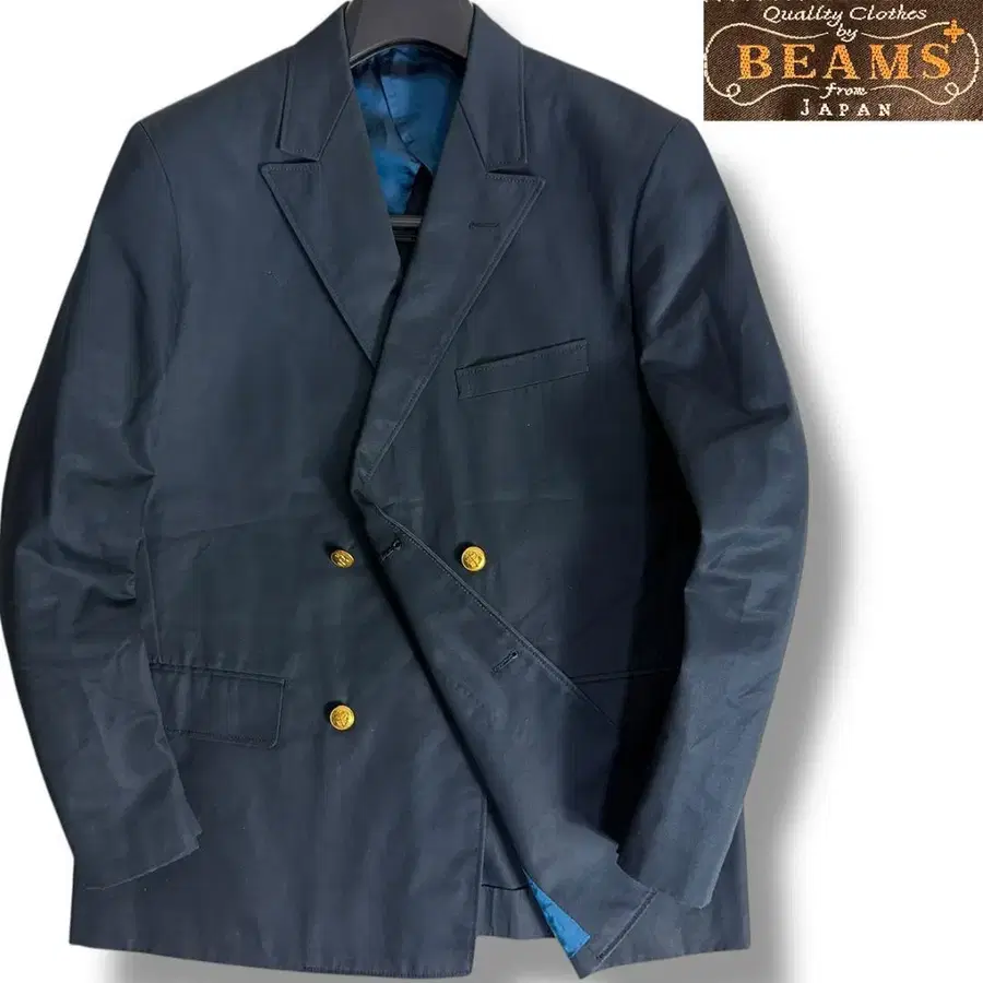 BEAMS PLUS다운 클래식한 분위기의 더블 브레스트 네이비 블레이저.
