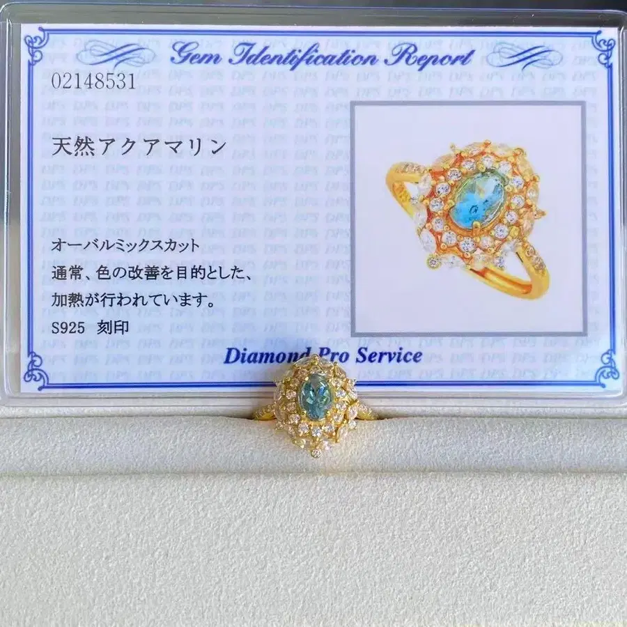 천연 아쿠아 마린 지르코니아 실버 반지 일본 보석 감별 미니 카드 포함