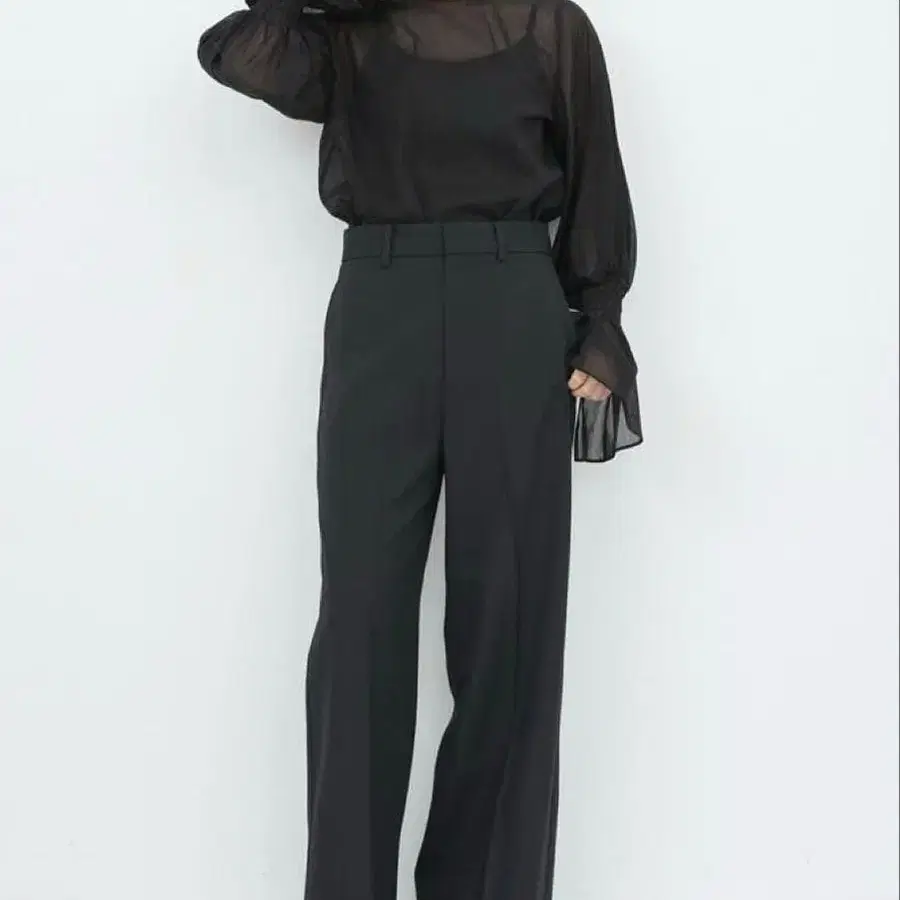 • FELISSIMO MEDE 19F 블랙 시어 블라우스