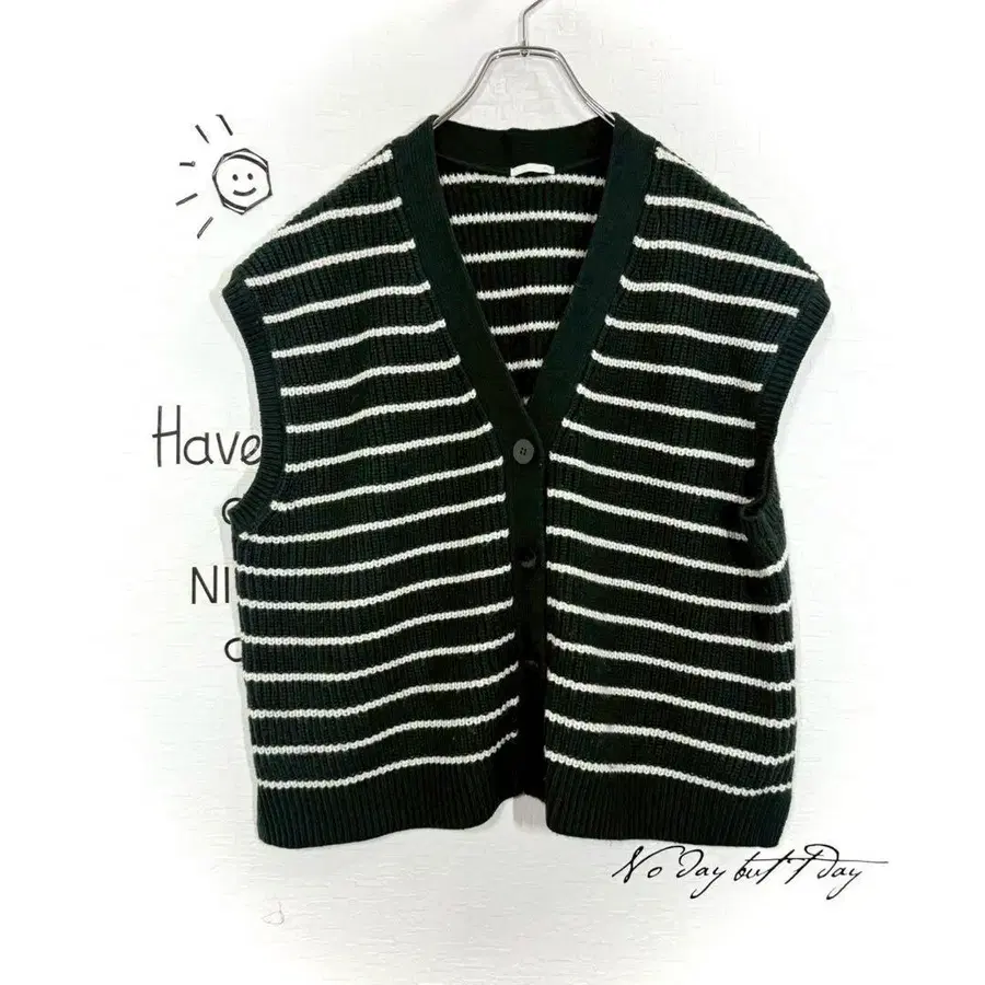 GU (지유) 보더 니트 가디건 베스트 V넥 그린