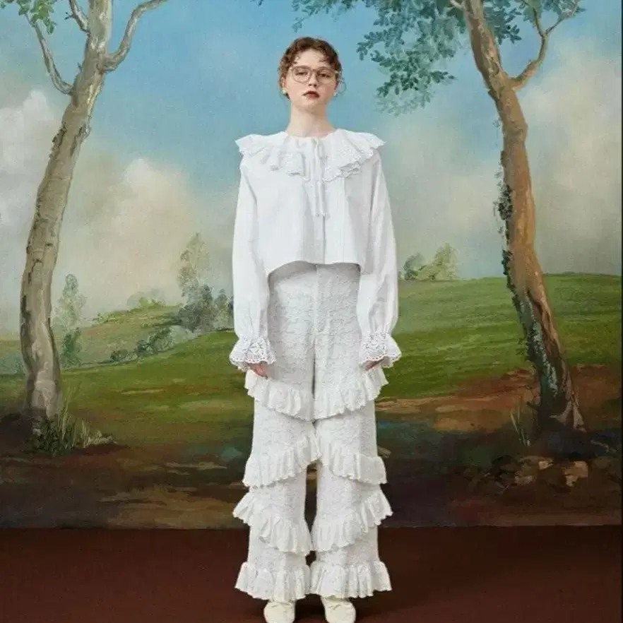 전체 레이스로 제작된 프릴이 풍성한 팬츠.