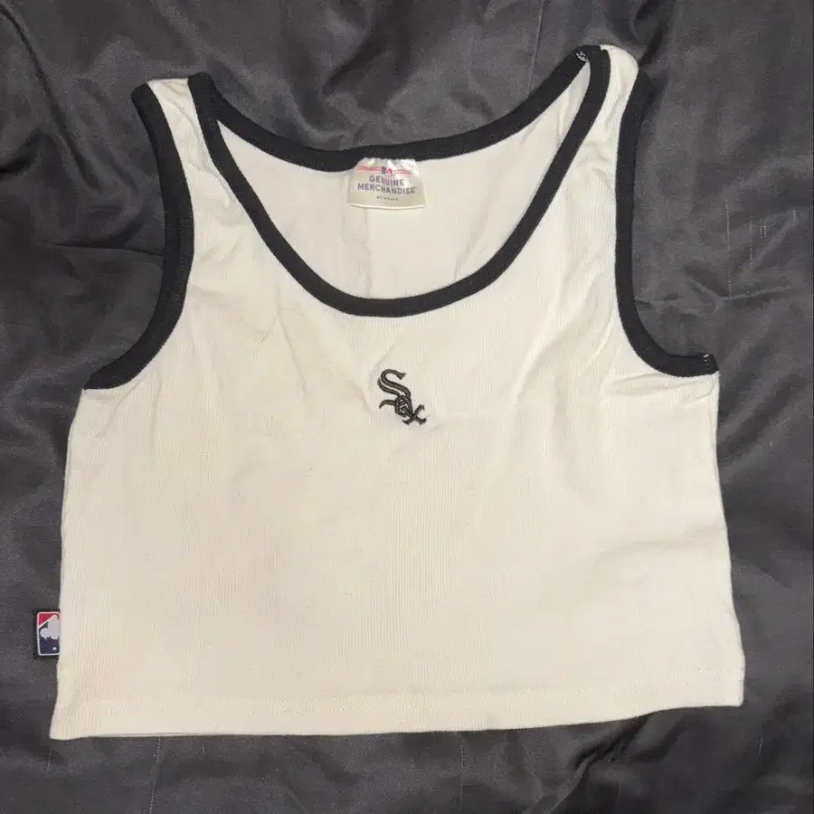 삭스 화이트 탱크탑 로고 자수