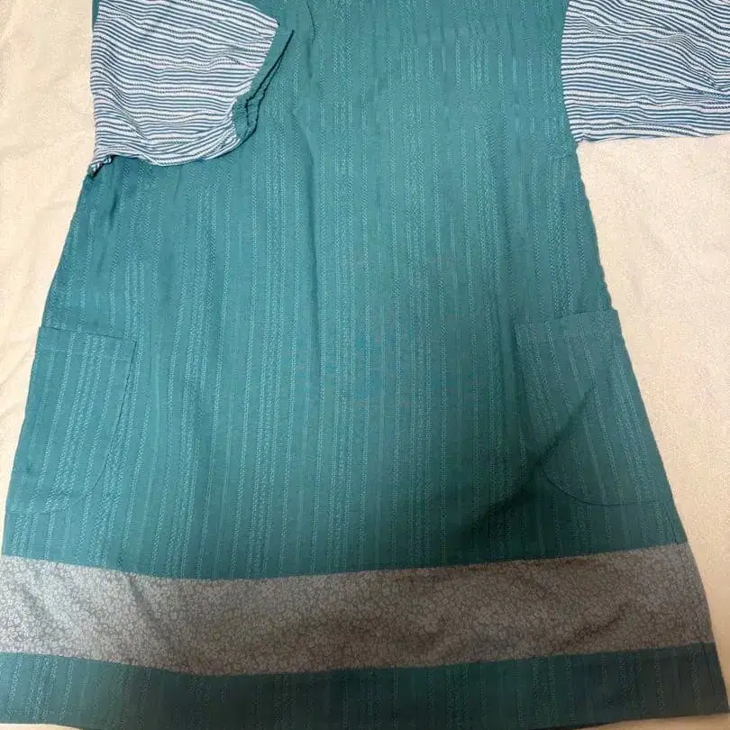 그린 컬러 스트라이프 소매 튜닉 스모크 보육사 간호사