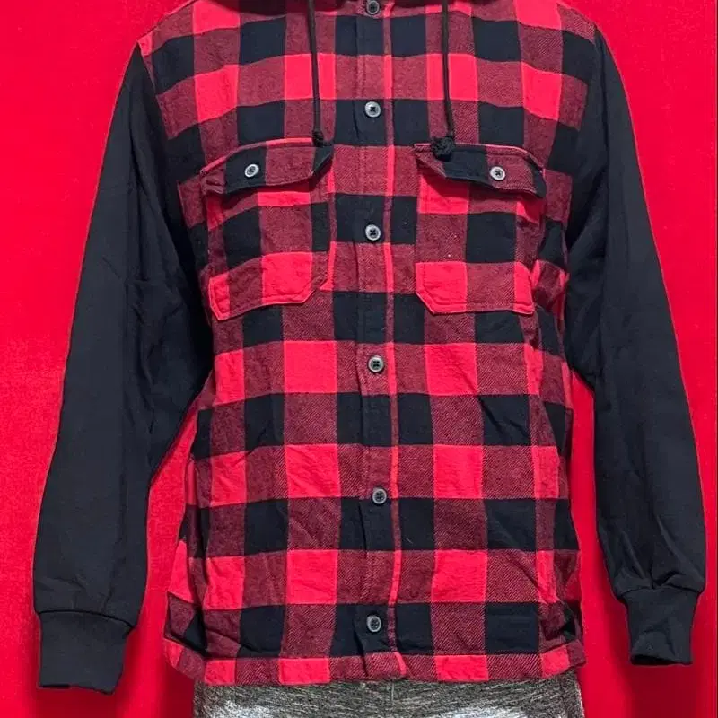 블랙 x 레드 체크 무늬 플란넬 셔츠