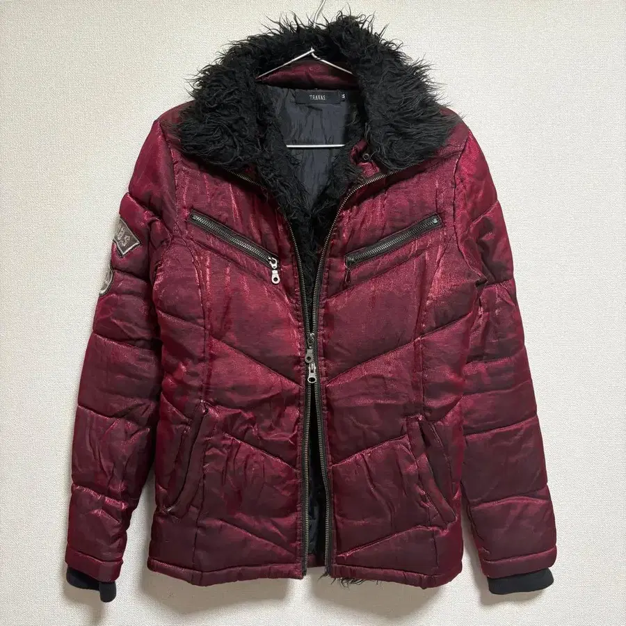 TRAVAS 퍼 다운 자켓 Y2K 광택 시크 스타일 V계 FUGA