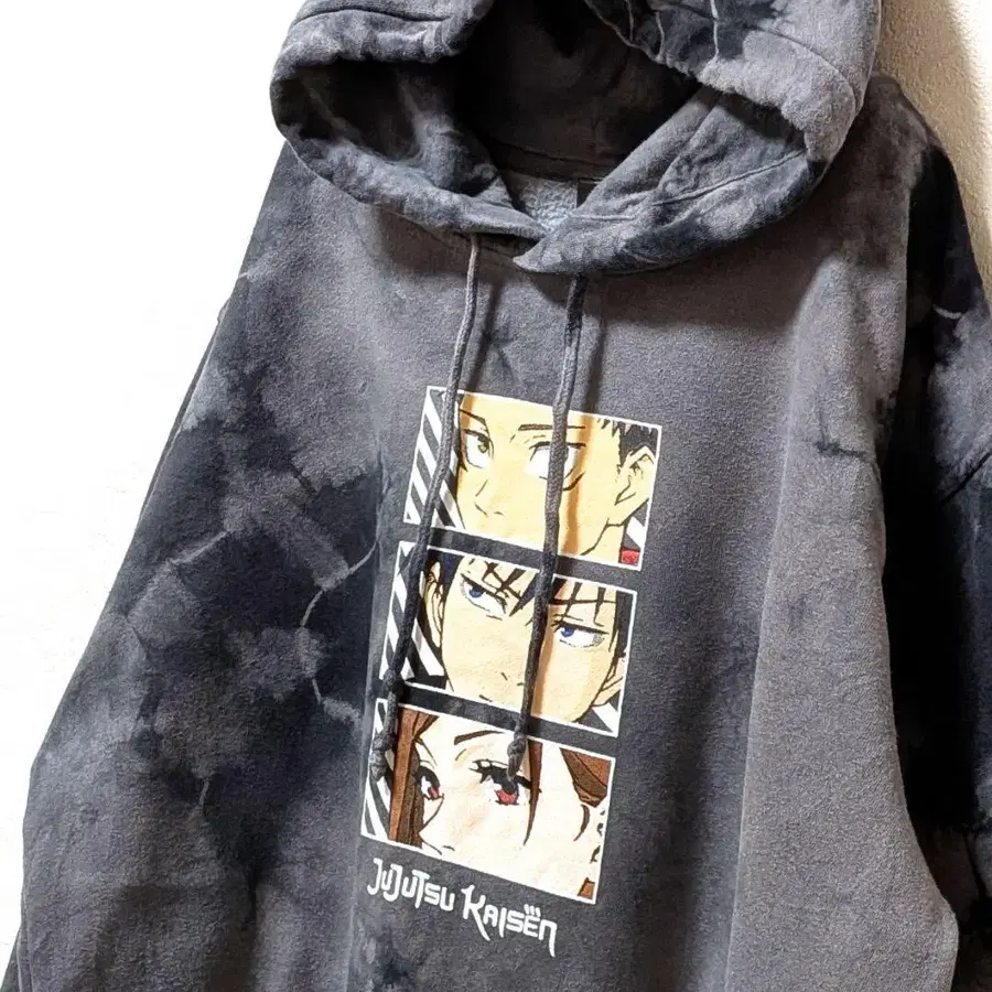 주술회전 로고 올 패턴 후드 맨투맨 타이 다이 블리치 L 구제 의류