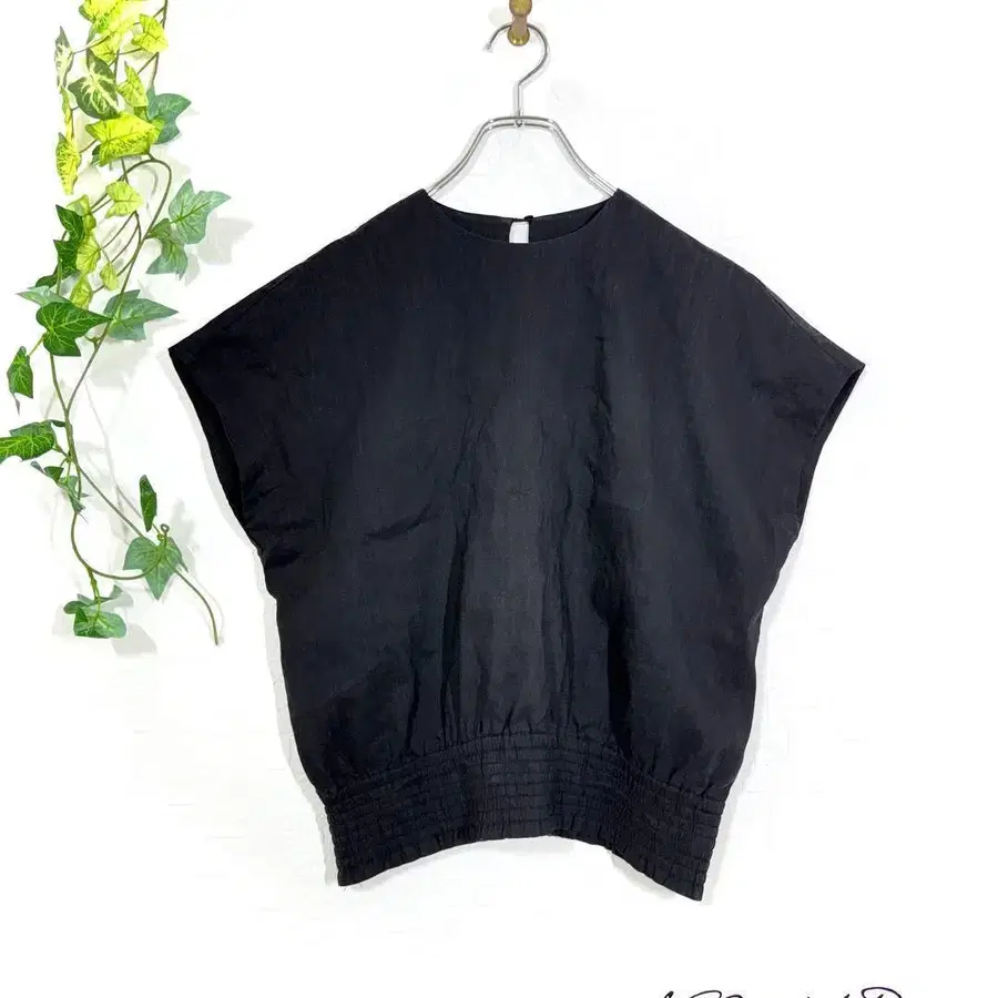 Mila Owen의 프렌치 돌먼 슬리브 블라우스. 밑단의 셔링 고무 (개더 절개)가 악센트가 되어, 봉긋한 실루엣으로 체형 커버도 가능합니다. 린넨 혼방의 산뜻한 소재감으로 착용감도 뛰어납니다. 캐주얼에도 포멀에도 코디하기 좋은 다용도 블랙 상의입니다. 스트레치 있음.
