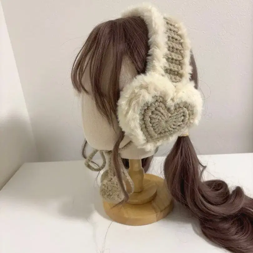하트 이어머프 베이지 핸드메이드 귀도리 귀마개
