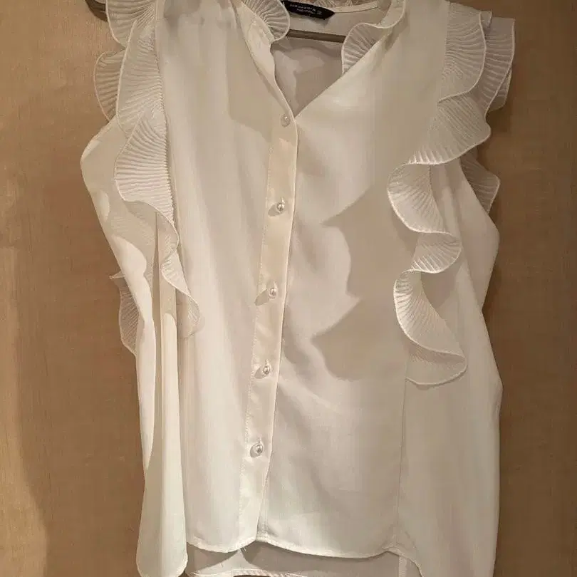 프릴 장식 화이트 슬리브리스 프릴 셔츠
