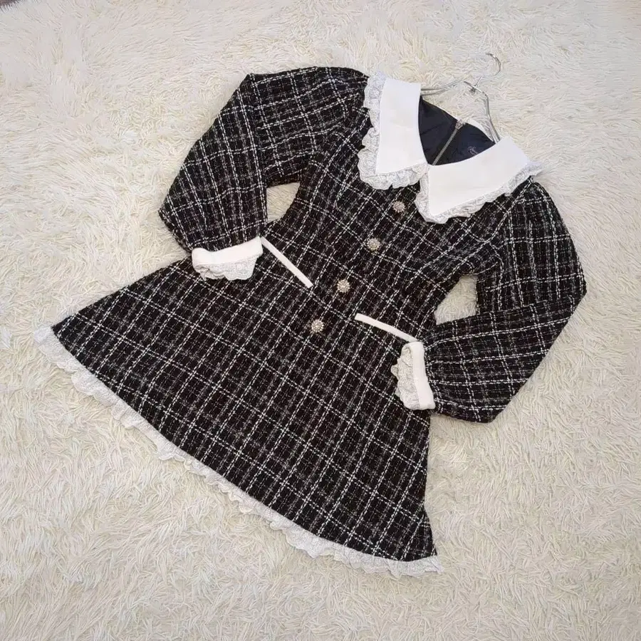 Swankiss 스완키스 미니 원피스 트위드 비쥬 긴팔 F