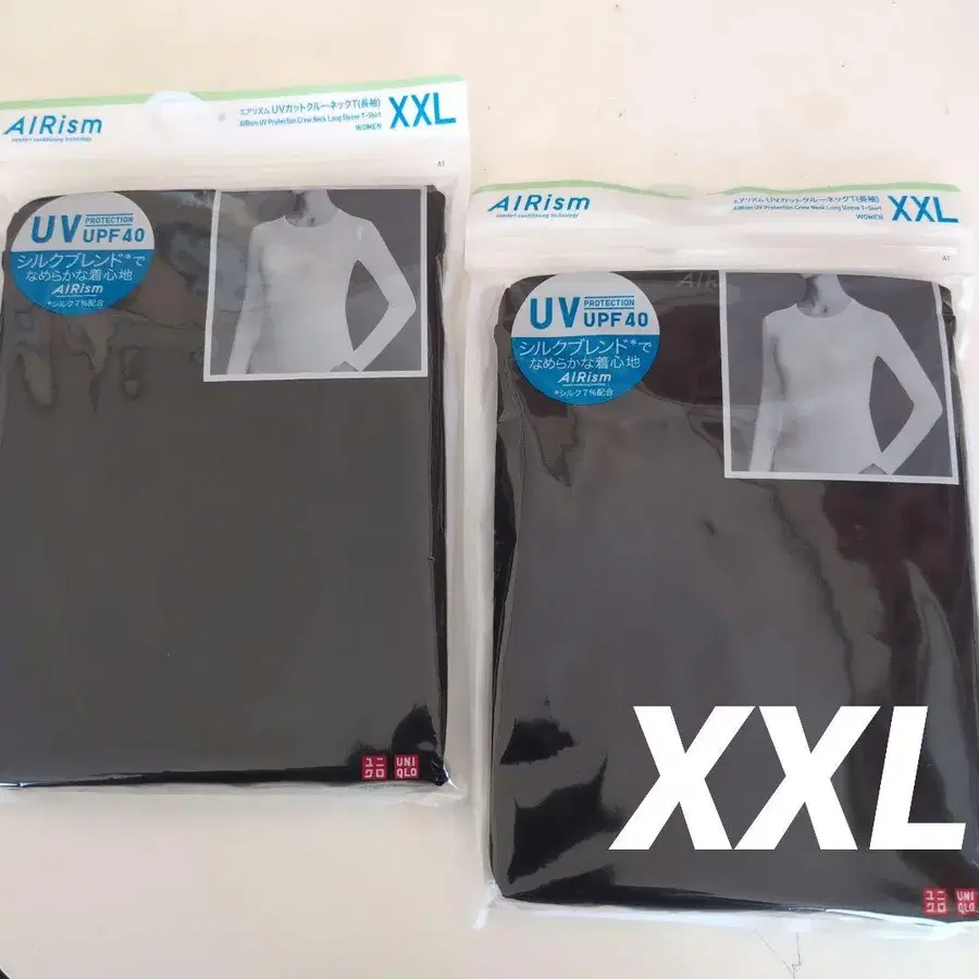 유니클로 AIRism UV컷 크루넥T 긴팔 T XXL 2장 Black