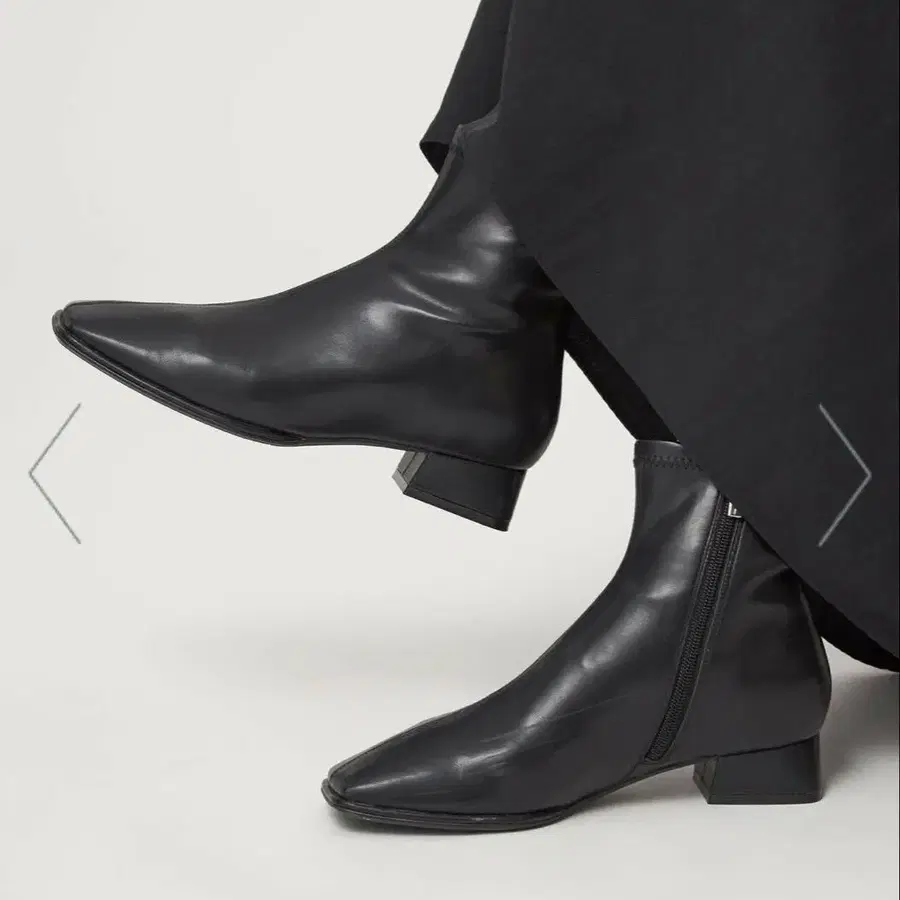 세련된 캐주얼 부츠로 스트레치 소재를 사용하여 디자인한 와이드 스퀘어 숏부츠.