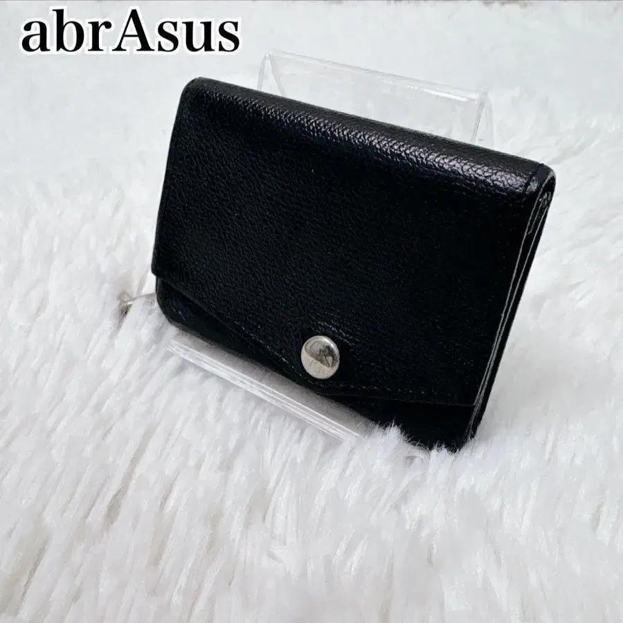 abrAsus 컴팩트 지갑 접이식 지갑 부테로 가죽 블랙 검정