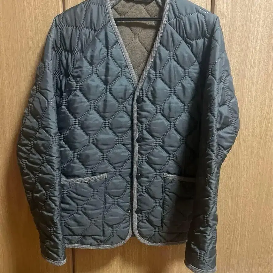 ARMEN 카키 퀼팅 자켓 아ㅁㅇㄷㅇ 노카라 V넥