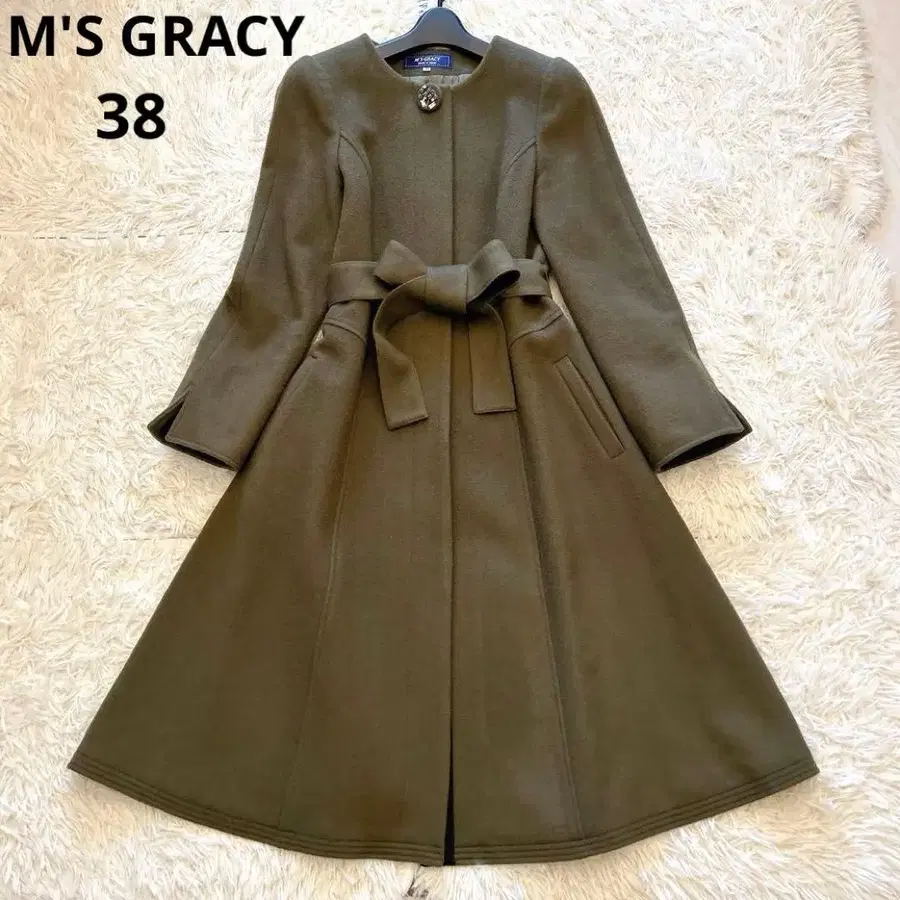 [ 새상품급 ] 엠즈 그레이시 노카라 롱 울 코트 벨트 비쥬 카키