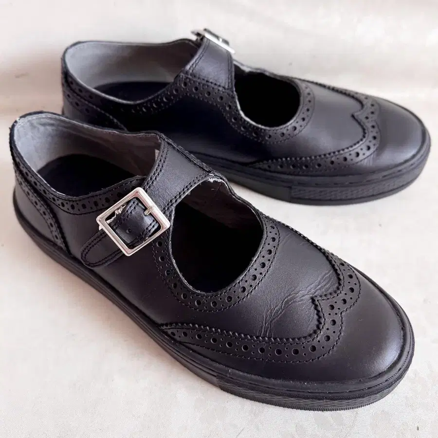 ● 포인트: 메리 제인 메달리온 스트랩 윙팁 로퍼 가죽 신발 슬립온 스니커즈