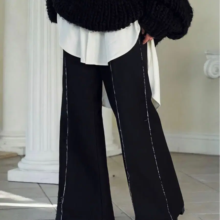 Seyto 데미지 라인 플레어 팬츠 블랙 사이즈 1