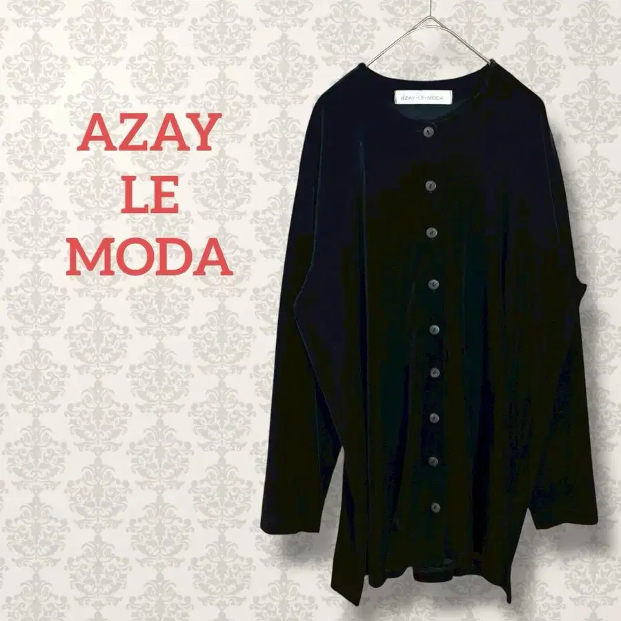 아젤모다 벨로아 롱 가디건 크루넥 루즈핏 겉옷 블랙 긴팔