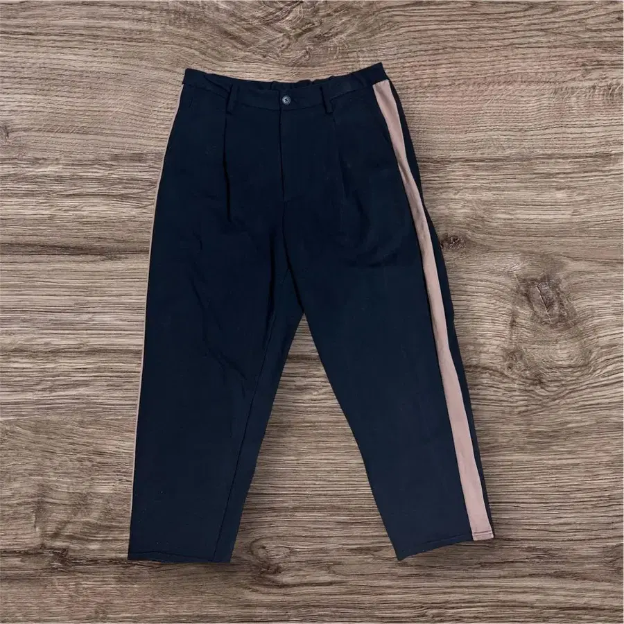 JUNRED 블랙 사이드 스트라이프 슬랙스