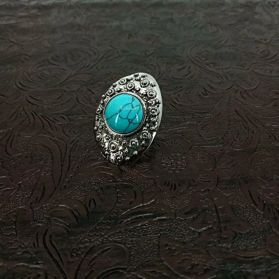 빈티지, 터콰이즈, 실버 반지 프리 사이즈