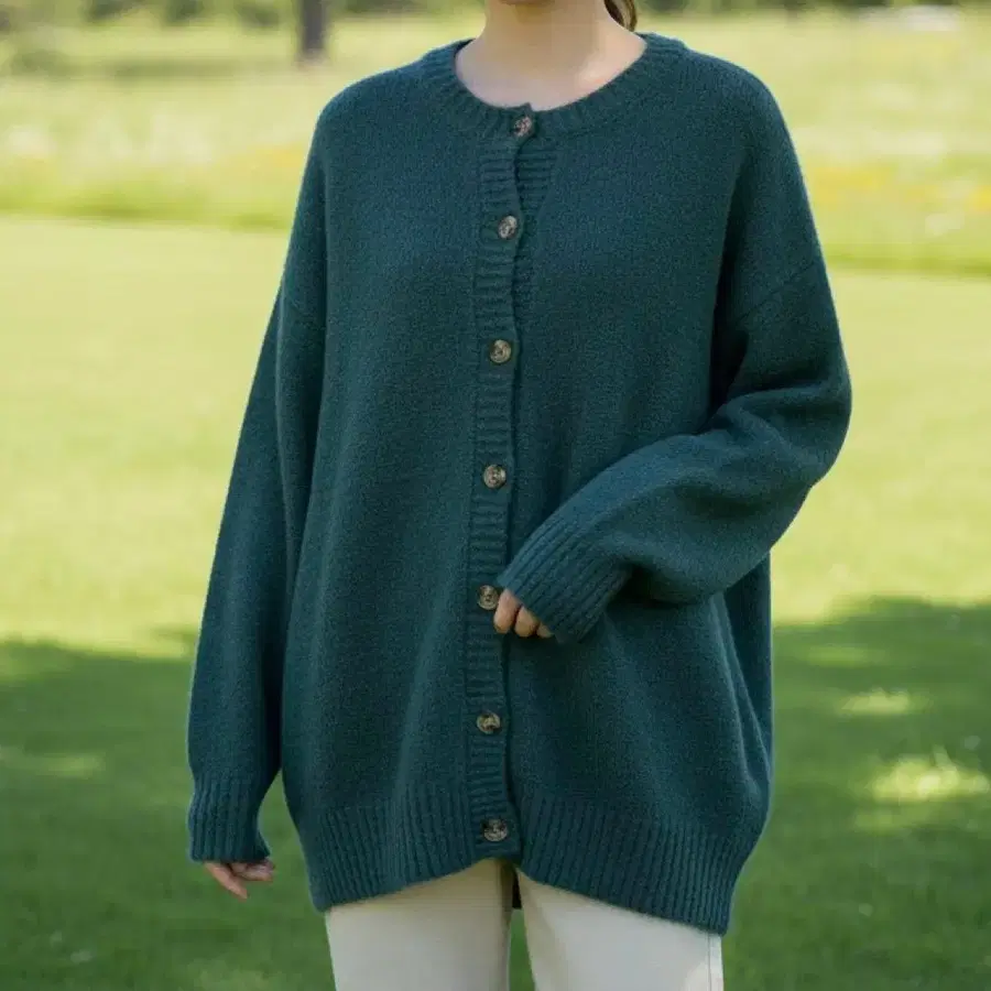 클래식 엘프 루즈핏 니트 가디건 오버사이즈 M 사이즈 그린