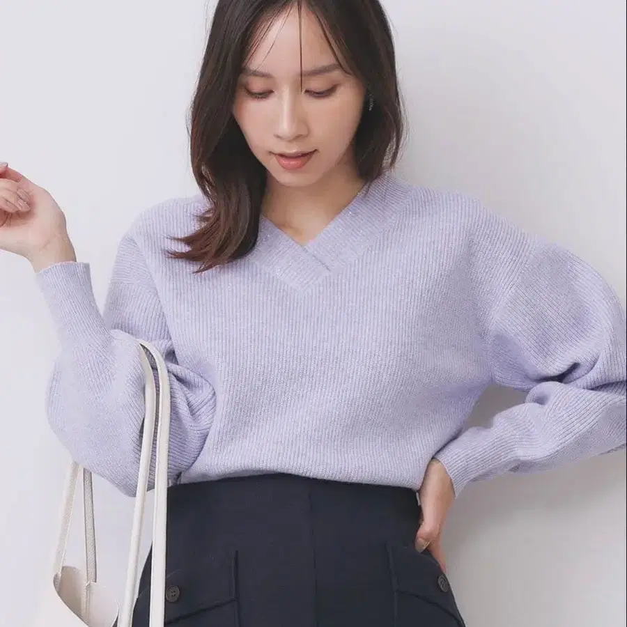 택 포함 새상품 index 편직 V넥 박스 퍼프 니트 색스 블루