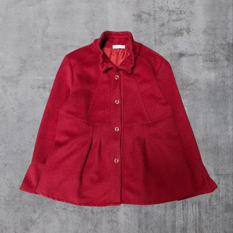 케이프 코트 울 혼방 핑크 레드 달 태양 빈티지 버튼 한국 레트로
