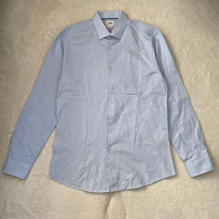 ZARA 자라 와이셔츠 슬림핏 도트 무늬 비즈니스 라이트 블루 L
