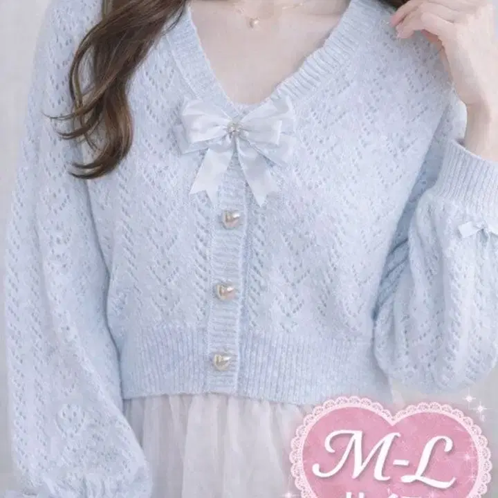 반짝이는 하트 편직 패턴 숏 가디건입니다 ♡