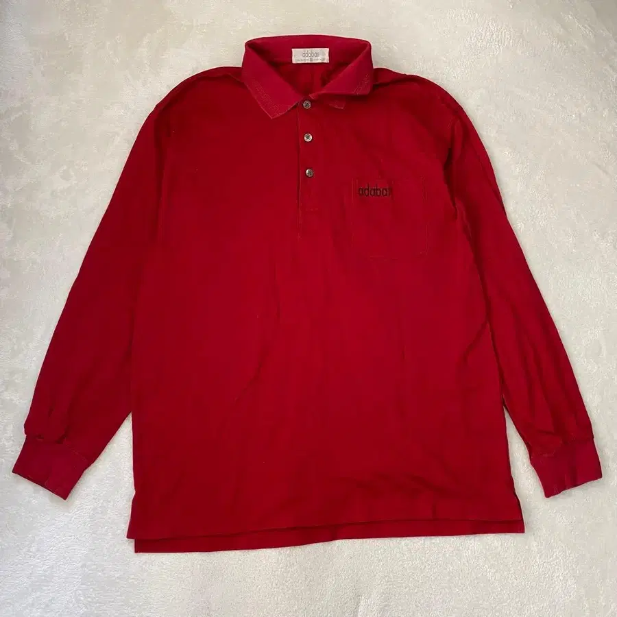 아다바트 피케 셔츠 긴팔 코튼 로고 자수 백 프린트 도크 레드