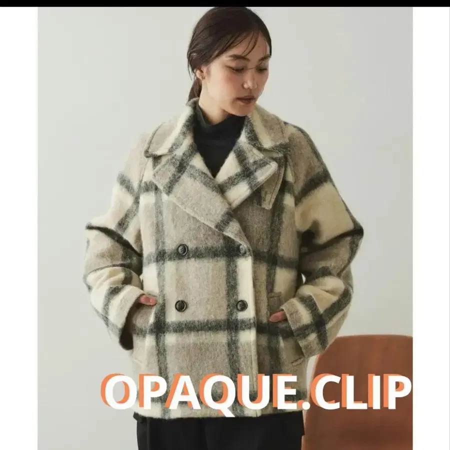 오파크 클립 빅 체크 미들 P 코트 베이지 x 그레이