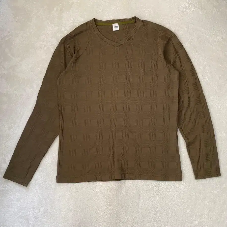 다케오 키쿠치 티셔츠 긴팔 V넥 체크 무늬 올리브 카키 L
