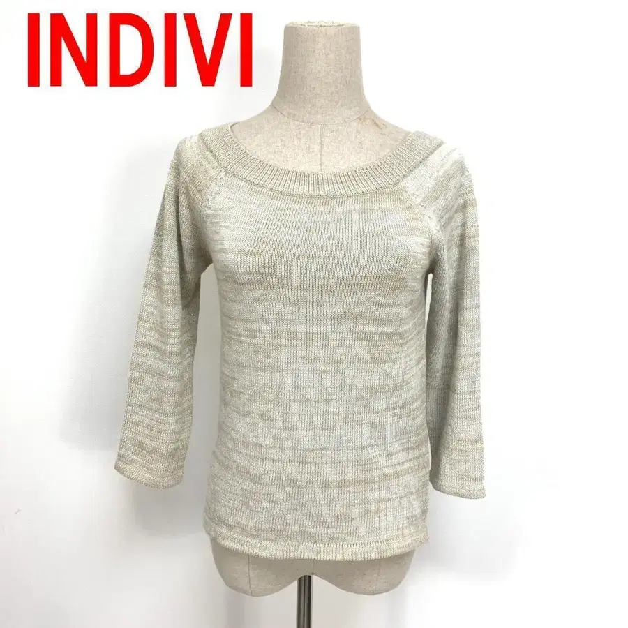 A6944 인디비 7부 소매 니트 면 아크릴 라메사 베이지 38