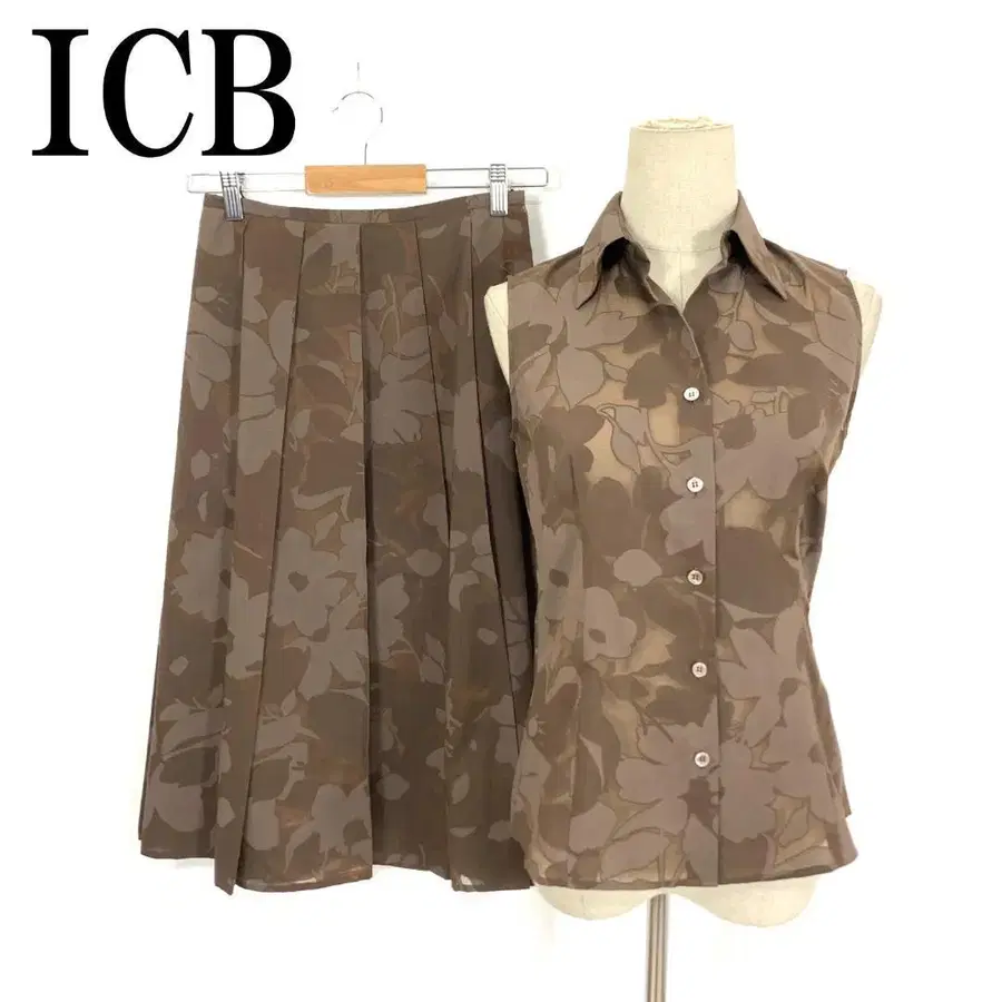 LA8141 아이씨비 스커트 셋업 면 슬리브리스 브라운 4