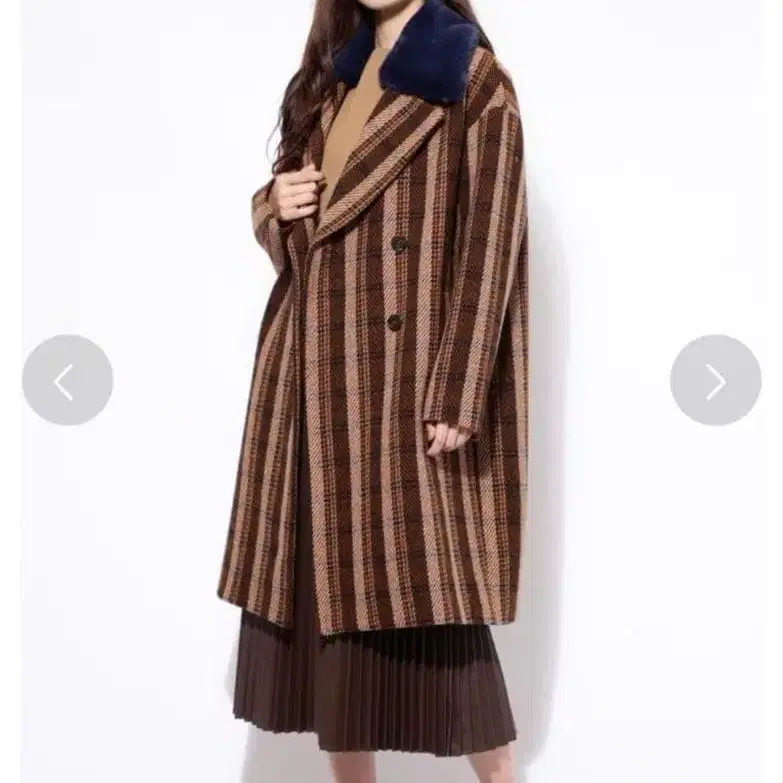 ROSE BUD 컬러 퍼 달린 체크 무늬 코트