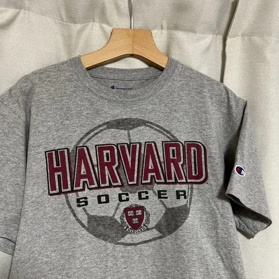 챔피언 하버드 대학 칼리지 축구 자수 로고 US 구제 의류 티셔츠