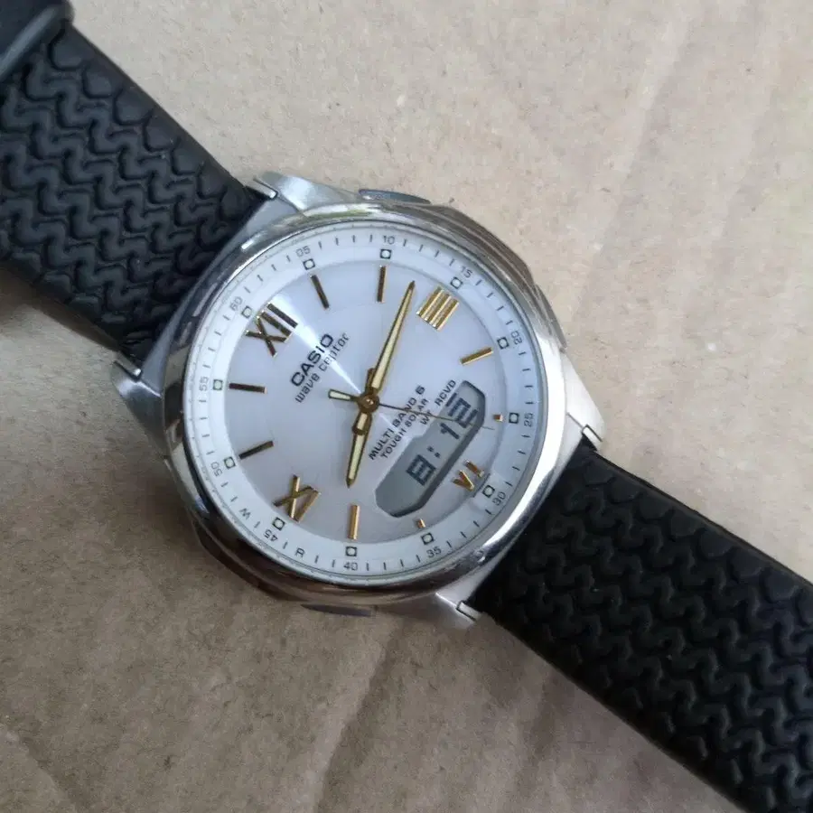 가동품. CASIO 전파 솔라 손목시계 실버/블랙