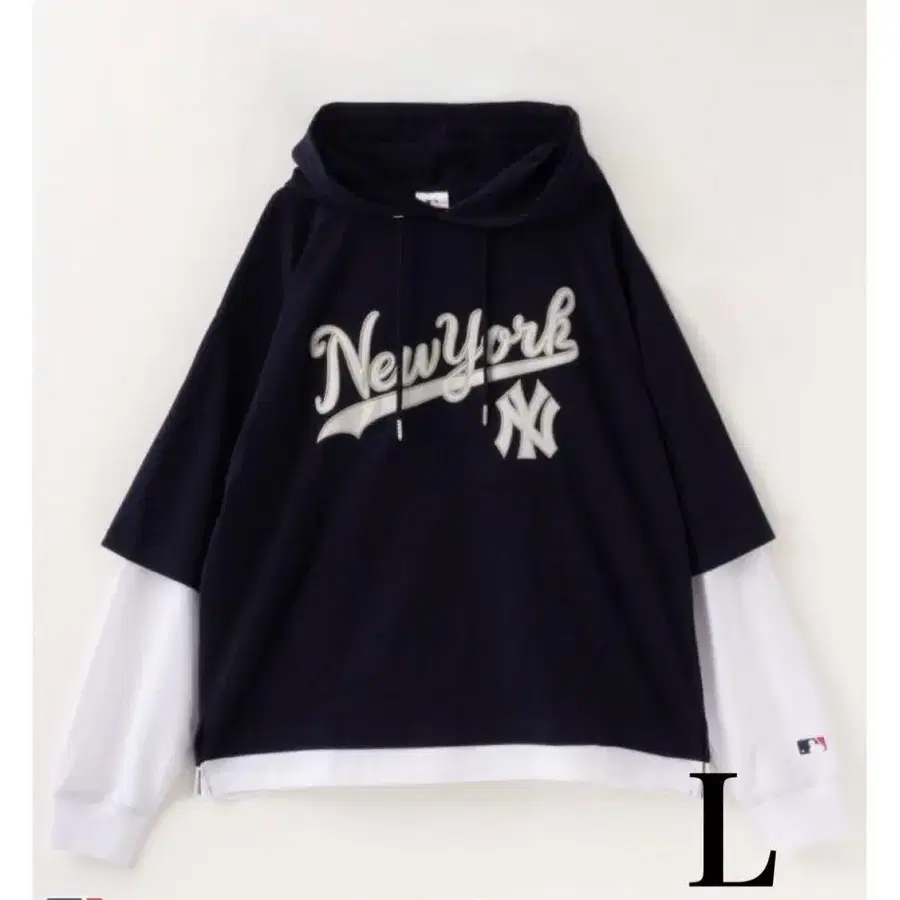 새상품 MLB 페이크 레이어드 후드티 남성용 네이비 L 양키스