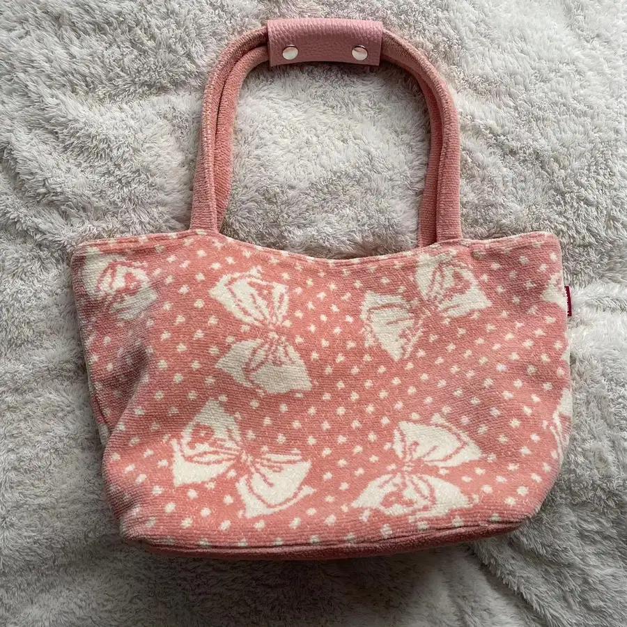 핑크하우스 셔닐 직조 리본 무늬 토트백