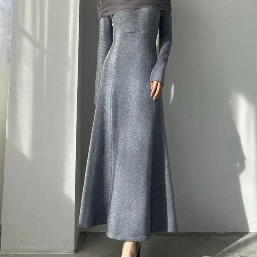 [택 포함 새상품] Louere 튤 오프숄더 플레어 니트 원피스