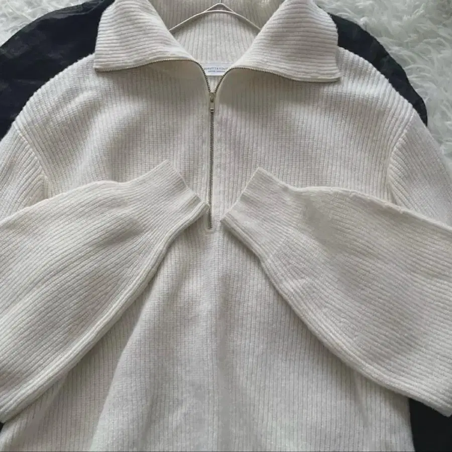 따뜻한 울 소재의 니트 스웨터입니다. 요즘 인기 있는 하프 지퍼로, 터틀넥으로 입거나 열어서 내추럴한 느낌을 연출하는 등 3가지 스타일을 즐길 수 있습니다. 밑단에 슬릿이 있습니다.
