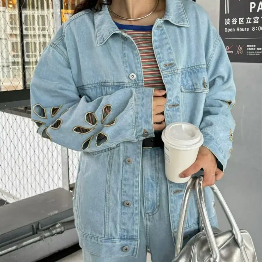 새상품 HELLO.SANFRANCISCO 플라워컷 데님 자켓
