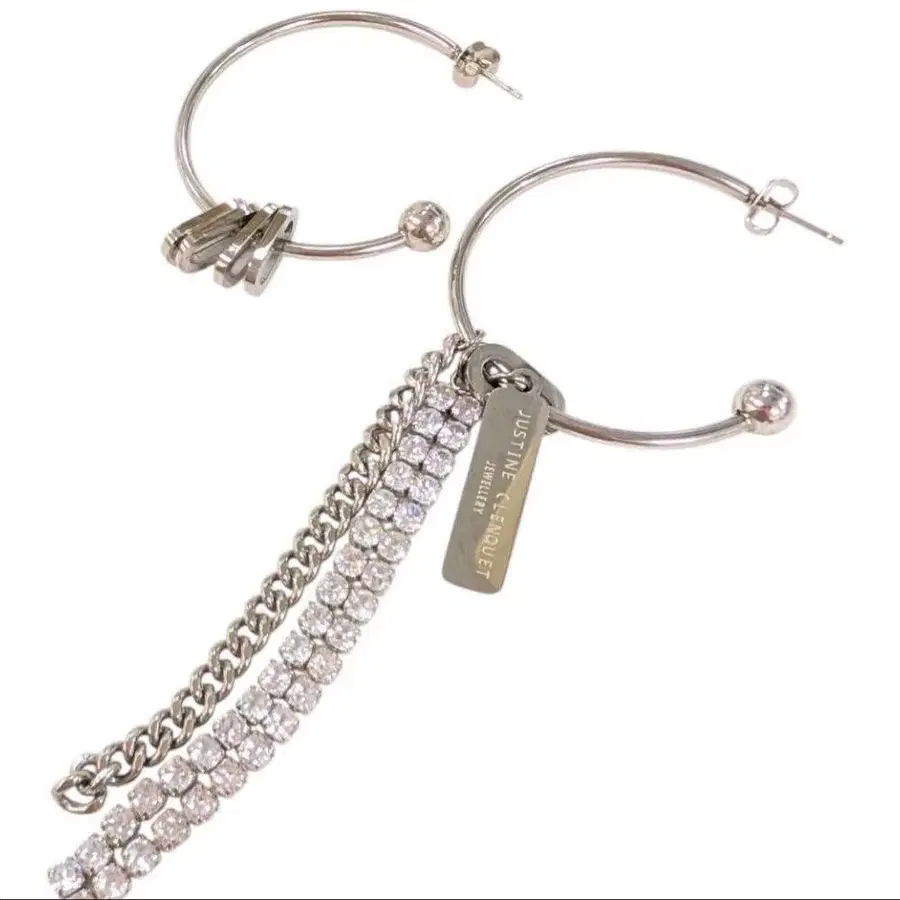 JUSTINE CLENQUET 실버 후프 귀걸이 크리스탈 스톤 체인