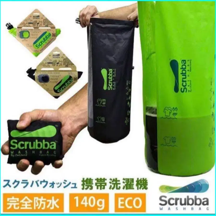 스크라바 워시 백입니다. 프린트는 흐릿하지만 누수 없이 아직 사용 가능합니다. 세탁 끈에 빨래집게를 세트한 것과 호텔 욕실 등에서 끈을 묶는 데 유용한 S자 후크 3개, 그리고 접이식 행거 1개를 덤으로 드립니다. 물이 제한적인 아웃도어, 여행, 출장, 차박, 그리고 재난 시 등에 활약합니다. ◆ 사이즈: 보통 사이즈 ( 스크라바 mini가 아닙니다 ) ◆ 색상: 그린 ◆ 사이즈 54cm x 32cm ( 펼쳤을 때 ) [ 상품 설명 ] 스크라바 워시 백은 단 3분 이내, 그리고 세탁기의 1/10의 물로 쉽게 세탁할 수 있습니다. 의류에 부드러운 디자인이므로, 옷을 손상시키지 않고 얼룩은 확실하게 제거할 수 있습니다. 사용 후에는 초경량 & 컴팩트한 방수 백으로도 사용할 수 있어, 언제 어디에나 휴대할 수 있습니다. 이 제품은 압축하여 발송됩니다. 부탁드립니다. 세탁 주머니 워시 백 스크라바