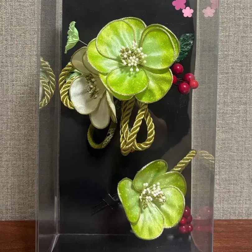 머리 장식 세트 그린 컬러와 화이트 컬러 꽃
