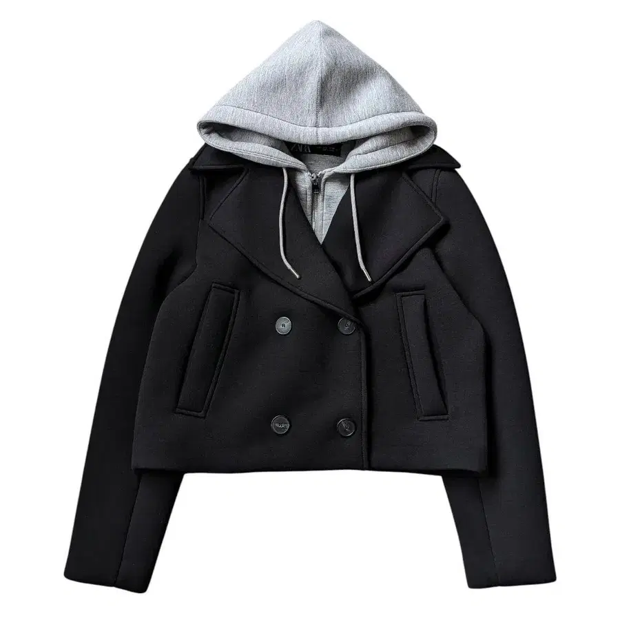 ZARA 자라 후드 레이어 크롭 자켓 블랙 그레이 S