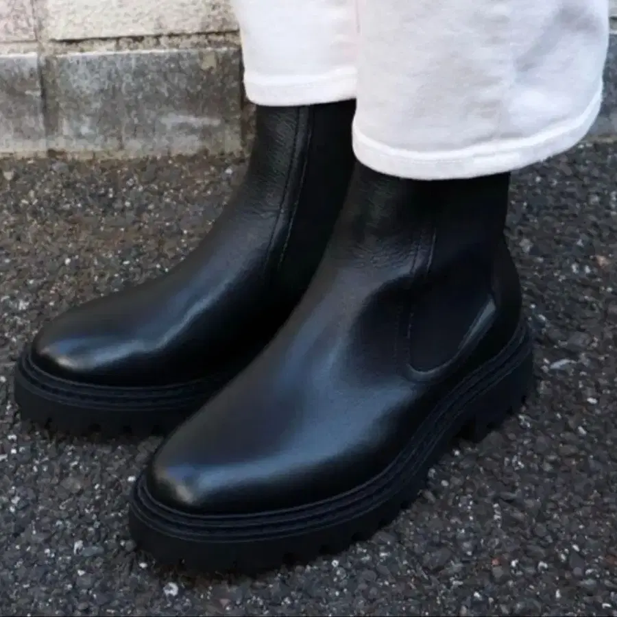 [ 시착만 함 ] EVOL 천연 가죽 트랙 밑창 부츠 24.0 블랙