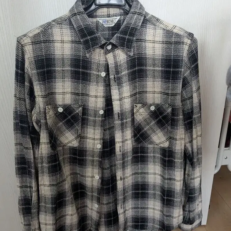 FIVE BROTHER 체크 무늬 플란넬 셔츠 화이트